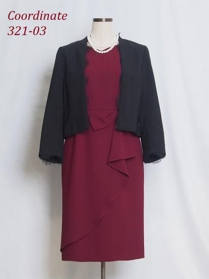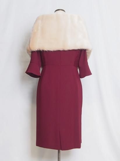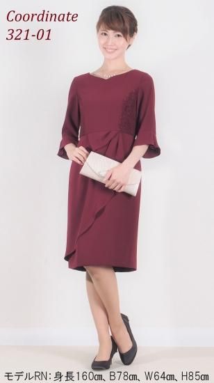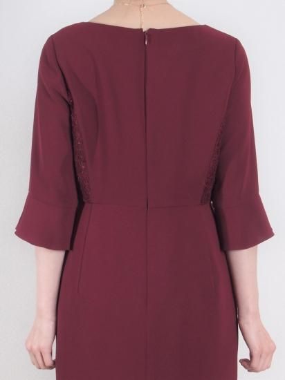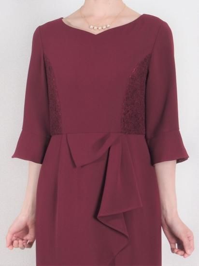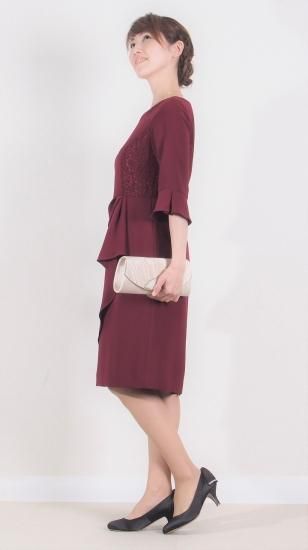 深みのあるボルドーカラーの落ち着いた大人ドレスです。