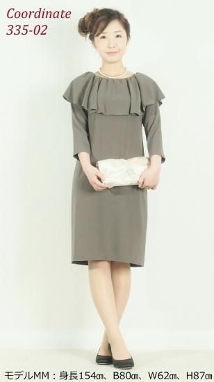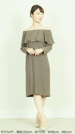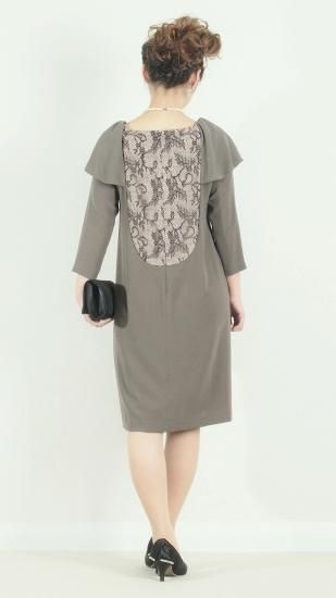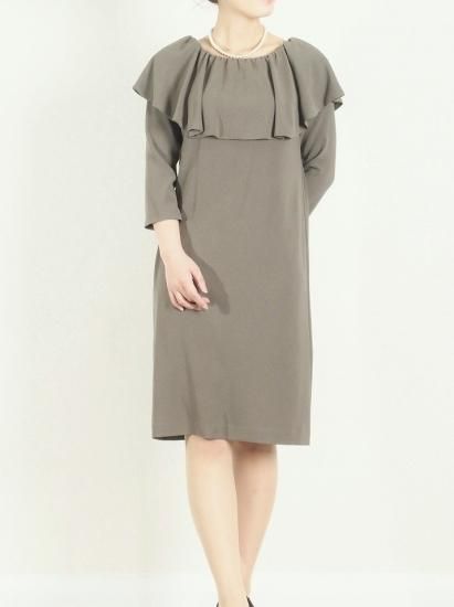 ケープ風フリルディティールの襟ぐりが印象的なドレス。