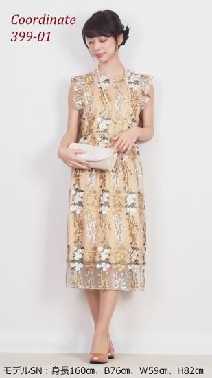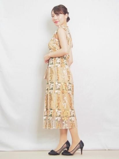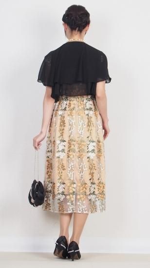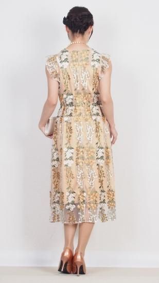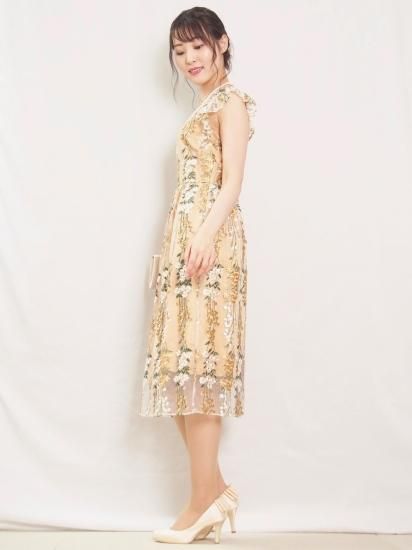 チュールレースに刺繍を施した、総レースのミディ丈のドレス。
