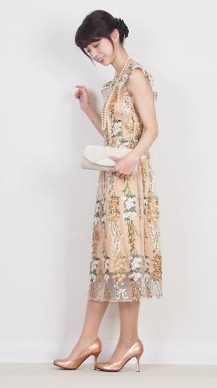 ミディ丈でスカートの広がりも落ち着いたドレスなので、大人エレガントな立ち振る舞いを意識させてくれます。