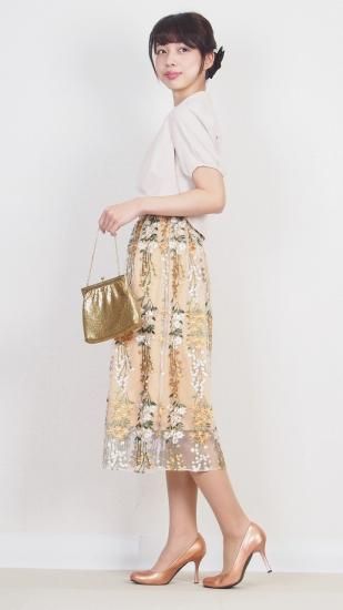 ボタニカルな花柄刺繍は、お花畑のようで明るく華やかな印象です。