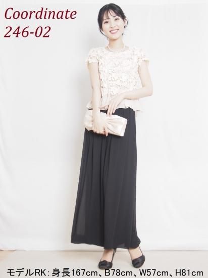 ・トップスはレースで裏地付き(袖部分は裏地無)。裏地裾にシフォンの幅広フリルが付いていて重ねティアードブラウスに見えます。