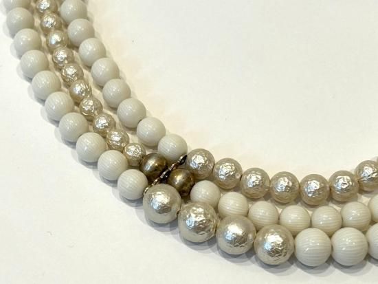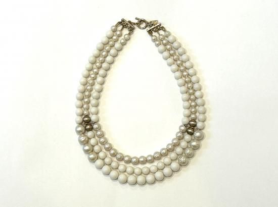 3種類の素材を組み合わせて作られた3連ショートネックレスです。