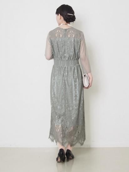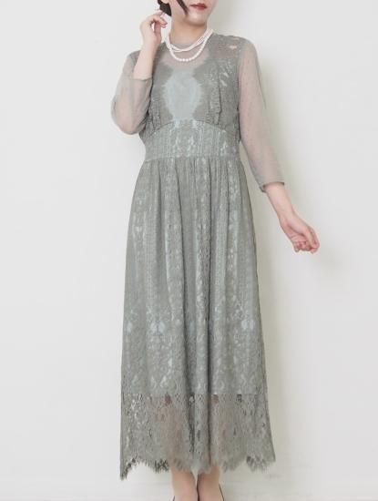 華やかなパネルレースを使用した、ふんわりIラインシルエットドレス。